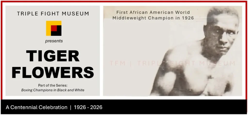 Throughout 2026, TFM is commemorating two important events from the boxing world of 1926: Tiger Flowers becoming the first African American to win the world middleweight championship after defeating Harry Greb, and Greb’s untimely death later that October. I am pleased to announce that TFM’s first Centennial Commemoration presentation, It Took a TIGER to Fracture Boxing’s Color Line, opens on July 1, 2026. Your interest in the presentation makes you an important participant in our commemoration. Thank you.